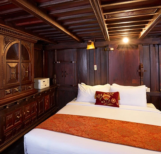 Mute The Leela Ashtamudi, A Raviz HotelPerched on the tranquil banks of Ashtamudi Lake, The Leela Ashtamudi, A Raviz Hotel, is a timeless retreat where Kerala’s soul meets serene luxury. Built in traditional nalukettu style, with whitewashed walls, red-tiled roofs, and breezy verandahs shaded by swaying coconut palms, this heritage resort is among the finest luxury resorts in Ashtamudi, offering an immersive escape into nature and culture.Drift through lush mangroves by boat, dine at a floating restaurant under the stars, and witness oil lamps flicker at sunset as classical music and dance bring Kerala’s spirit to life. Recognised as one of the best luxury family resorts in Kerala, this is more than a stay — it’s an experiential journey into the heart of the backwaters. Stay & Revel The Raviz Palace Mahayana Houseboat Anchal Cottage Erattupetta Cottage Royal Suite with Panoramic View Heritage Suite Royal Villa with Plunge Pool Royal Premier Lake View Royal Premier Grand Heritage Lake View Grand Heritage Room Curated Offers Festive Getaway Mana Shanti The Leela Palace Trail Time Travel with The Leela Lake and Beach Ecstasy View All Epicurean Delights Raanthal A floating seafood restaurant in Kollam, aglow with lamps, serving the freshest grilled catch of the day. Keraleeyam Savour the soul of Kerala with dishes like Raviz Fish Nirvana at one of the best restaurants in Kollam. Portico Sip freshly brewed coffee and savour moments of quiet or camaraderie. Zirkon Aqua-Themed Sports Bar Celebrations & Conferences CelebrationsIntimate celebrations to grand galas, making every occasion timeless. Enquire Now Factsheet MeetingsAllow us to orchestrate every detail, so your meetings flow effortlessly. Enquire Now Factsheet The Leela Ashtamudi, A Raviz HotelHotel CoordinatesHotel Address:Thevally Bridge, Kollam - Elamballoor Road, Palace Nagar, Thevally, Mathilil, Kerala - 69160190 mins from Trivandrum (Thiruvananthapuram) Airport Telephone: +91 (474) 275 1111 Hotel Factsheet FAQs Enquire Now You must have JavaScript enabled to use this form. Name phone Phone Email Hotel*The Leela Ashtamudi, A Raviz Hotel Purpose of EventWeddingsCelebrations Need a stay?YesNo Additional Information I agree to receive updates, offers, via sms, rcs & Whatsapp. Mobile Number Enquire Now You must have JavaScript enabled to use this form. Name Phone Email Hotel*The Leela Ashtamudi, A Raviz Hotel Additional Information I agree to receive updates, offers, via sms, rcs & Whatsapp. Mobile Number