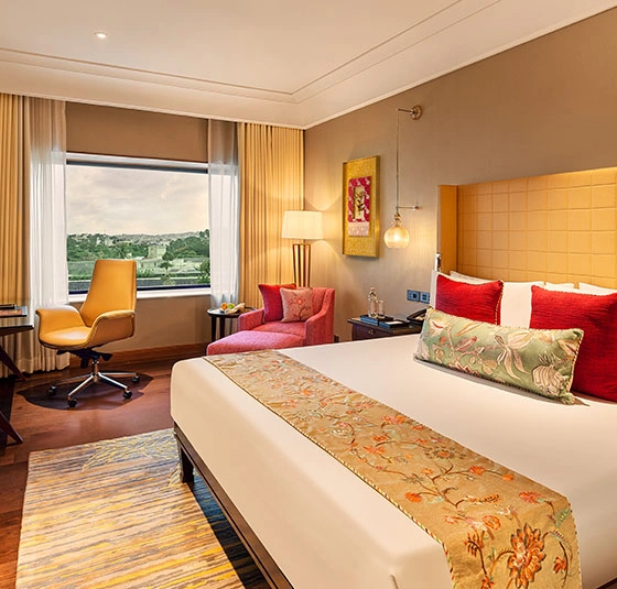 Mute The Leela HyderabadSet amidst 2.5 acres in the heart of Banjara Hills, The Leela Hyderabad is a luminous jewel in the city of pearls and Nizams, a modern palace style hotel where classic grandeur meets progressive luxury. Inspired by Deccan heritage, its design stuns with Warangal temple-style pillars, Turkish chandeliers, gilded ceilings, and hand-painted murals, unfolding like a treasured jewel box. From elegant rooms and themed suites to club-level sophistication, every space blends regal charm with contemporary comfort. Savour heirloom Deccani flavours, sip courtly teas, or unwind in the 16,000 sq. ft. wellness sanctuary. More than a hotel, The Leela Hyderabad is an in-city sanctuary - where refined tradition meets immersive experience in every exquisite detail. Stay & Revel Pratap Suite Qutb Suite Rudra Suite Firoz Suite The Nizam The Florentine Twin The Florentine The Orlov Twin The Orlov The Regent Curated Offers Festive Getaway Nila Wellness Package Leela DISCOVERY Member Special The Leela Palace Trail Time Travel with The Leela View All Epicurean Delights Raen: The Chef’s Studio Savour exquisite flavors by renowned chefs amid captivating art, with vibrant Sunday Brunches. Solcito Savour a sensory feast of regional and global flavours, surrounded by evocative art. The Wild Teapot (TWT) Experience the perfect blend of art, tea and champagne in a space made for indulgence. The Library Bar A refined space where fine wines, rare malts and handcrafted cocktails take center stage. Tiga Celebrates an outstanding fusion of Singaporean, Malaysian, and Chinese cuisines. Adi An immersive dining destination where timeless Telugu traditions meet refined culinary artistry in a celebration of heritage and grace. Celebrations & Conferences CelebrationsIntimate celebrations to grand galas, making every occasion timeless. Enquire Now Factsheet MeetingsAllow us to orchestrate every detail, so your meetings flow effortlessly. Enquire Now Factsheet The Leela HyderabadHotel CoordinatesHotel Address:Road No 2, Banjara Hills, Hyderabad, Telangana 50003440 mins from Hyderabad International Airport Telephone: +91 (40) 4887 1234 Hotel Factsheet Enquire Now You must have JavaScript enabled to use this form. Name phone Phone Email Hotel*The Leela Hyderabad Purpose of EventWeddingsCelebrations Need a stay?YesNo Additional Information I agree to receive updates, offers, via sms, rcs & Whatsapp. Mobile Number Enquire Now You must have JavaScript enabled to use this form. Name Phone Email Hotel*The Leela Hyderabad Additional Information I agree to receive updates, offers, via sms, rcs & Whatsapp. Mobile Number