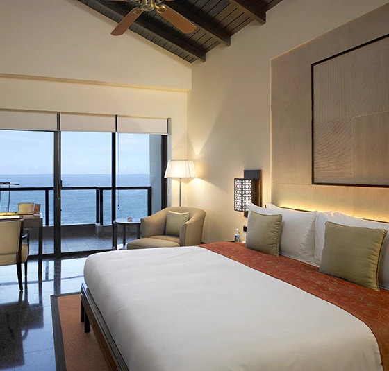Mute The Leela Kovalam, A Raviz HotelPerched majestically on a cliffside overlooking the Arabian Sea, The Leela Kovalam, A Raviz Hotel, is India’s only clifftop 5-star resort in Kovalam — a timeless retreat designed by Charles Correa. Spread across 67 acres, it includes the historic Halcyon Castle, once the royal summer residence of Travancore’s kings, making it a landmark luxury resort in Kovalam, Kerala.Whitewashed walls, red-tiled roofs, and panoramic sundecks frame sweeping ocean vistas, while the sea breeze and rhythmic waves create a symphony of serenity. Explore local markets, dive into coastal adventures, and dine on the freshest seafood, straight from the day’s catch, at the best resort in Kovalam, Kerala.Wander through Aaramam, our sprawling 5-acre organic vegetable garden, or unwind with Ayurvedic rituals at the spa — the essence of a 5-star beach resort in Kovalam, Kerala. More than a stay, this is a royal embrace of Kerala’s coastal soul. Stay & Revel Palace Suite - Sri Parvathy Palace Suite - Sri Lakshmi Palace Suite - Sri Sharada Palace Suite - Sri Swathi Presidential Suite Ocean View Suite Royal Club Duplex Suite Royal Club Suite Royal Club Room Premier Sea View Room Sea View Villa Garden View Villa Curated Offers Festive Getaway Manashanti Leela DISCOVERY Member Special Romance at The Club The Leela Palace Trail View All Epicurean Delights The Tides Fresh seafood, a thatched roof and an open beach. Arguably Kovalam’s best beachfront restaurant. The Terrace Indulge in local and global flavours by the infinity pool at this luxury hotel in Kovalam. The Café A private, laid-back spot for Royal Club guests at this café in Kovalam. Jazz & Blues Sea views, cocktails and the rhythm of jazz. More than a bar, an experience. The Sky Bar Delight in candlelight, ocean breeze and signature drinks at Kovalam’s finest rooftop spot. The Bistro The ideal restaurant in Kovalam Beach for croissants, muffins and coffee by the pool. Celebrations & Conferences CelebrationsIntimate celebrations to grand galas, making every occasion timeless. Enquire Now Factsheet MeetingsAllow us to orchestrate every detail, so your meetings flow effortlessly. Enquire Now Factsheet The Leela Kovalam, A Raviz HotelHotel CoordinatesHotel Address:Kovalam Thiruvananthapuram, Kerala - 69552725 mins from Thiruvananthapuram International Airport Telephone: +91 (471) 6691111 Hotel Factsheet FAQs Enquire Now You must have JavaScript enabled to use this form. Name phone Phone Email Hotel*The Leela Kovalam, A Raviz Hotel Purpose of EventWeddingsCelebrations Need a stay?YesNo Additional Information I agree to receive updates, offers, via sms, rcs & Whatsapp. Mobile Number Enquire Now You must have JavaScript enabled to use this form. Name Phone Email Hotel*The Leela Kovalam, A Raviz Hotel Additional Information I agree to receive updates, offers, via sms, rcs & Whatsapp. Mobile Number